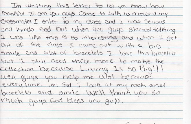 Years of going to the therapist, this bracelet and your cause has touched me and changed my mind about life. The doctors never once told me living is so big. I didn't need a band aid, I needed a human being to tell me all the wonderful reasons to live.